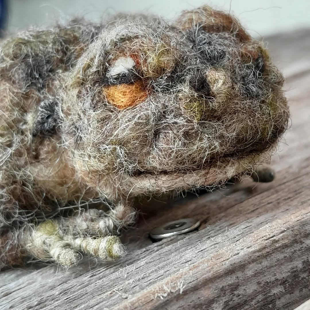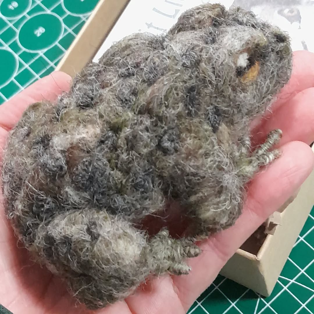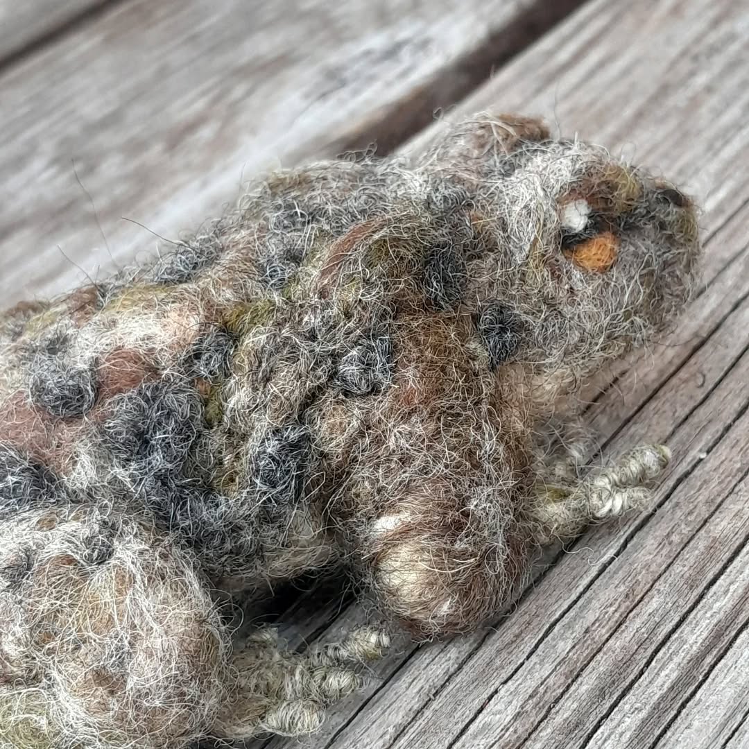 Nadelgefilzte Erdkröte aus österreichischer Schafwolle.